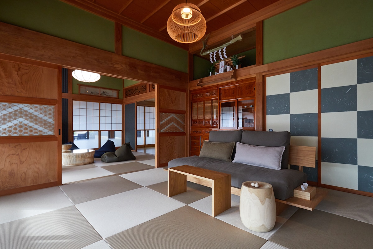 Imagine a slower, simpler, more serene place and time. A place set between emerald green rice fields and an endless sandy beach. An unhurried time of the past, when family and friends sat, talked, ate and drank on traditional tatami, or under the stars, with the faint sound of waves crashing rhythmically in the background. This is what you’ll find at Grandma’s House, a tastefully preserved mid-twentieth century cottage five minutes on foot from Toyoumi Beach in Kujukuri town.