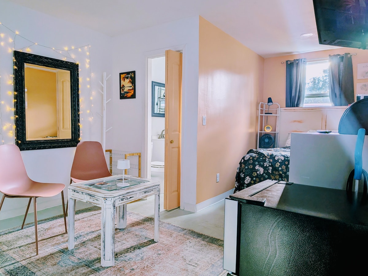 Parking for 1 vehicle only Studio apt. attached to our house but privately separated. Centrally located in Jacksonville, only a ten minutes to the beaches, 12 minutes to mayo clinic. Unit has all you need for a week long stay or just one night. Full Kitchen and laundry. Decorative Lighted patio available for all guests. Comfortable Queen sized bed easily sleeps 2, crib available on request for infants younger than 2. Hosts are friendly and answer communications immediately. Thank you.