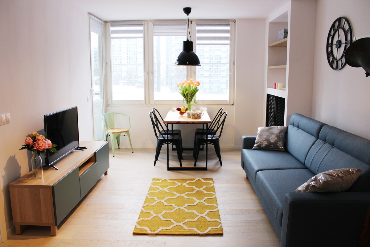 A cozy and stylish apartment located right next to Teatralny Square, just a few minutes' walk from the Old Town. It's the perfect place for a romantic getaway, a relaxing weekend or a quiet stay in the city center. This is a place created for couples who value design, atmosphere and privacy. In the living room you will find a spacious bathtub, perfect for an evening bath by candlelight. The bustling center of the capital is just a few minutes' walk away.