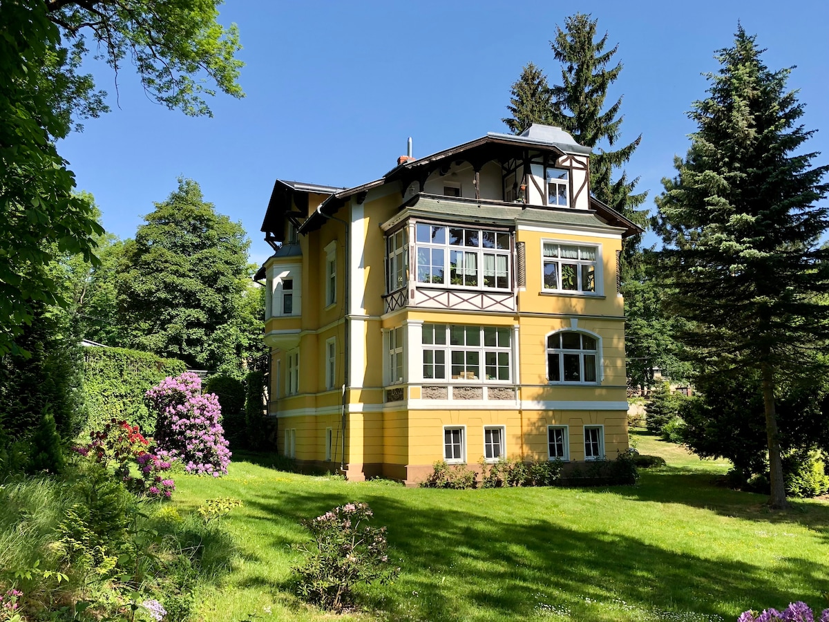 120 years old secession vila. Full of antiques and tales. Out of city rush. Regular cleaning and disinfection. Private sauna in the house. Close to Děčín, Sněžník, Tiske stěny, Hřensko. You can have a coffee in our tower:)! You can use a garden with trampoline as well. Excellent pub nearby:) Open water swimming pool 100m far. Fireplace in the livingroom. Barbecue set in the garden. Perfect for your holiday!