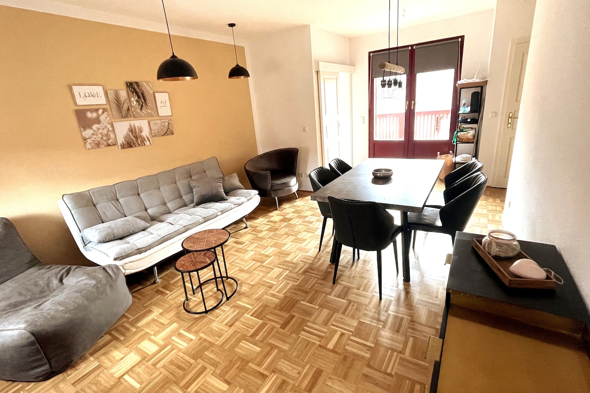 Modern 4 1/2-room apartment (100m2) over 2 floors in the beautiful old town of Pirna, yet quiet and located directly on Malerweg (Dresden-Saxon Switzerland). With castle view, small terrace. There are many hiking and biking tours in the immediate vicinity to explore, as well as a great cultural diversity (Elbe steamboat ride, castles, Königstein, Dresden is 16 km away) is available. Nice restaurants within walking distance. Parking in the nearby parking garage.