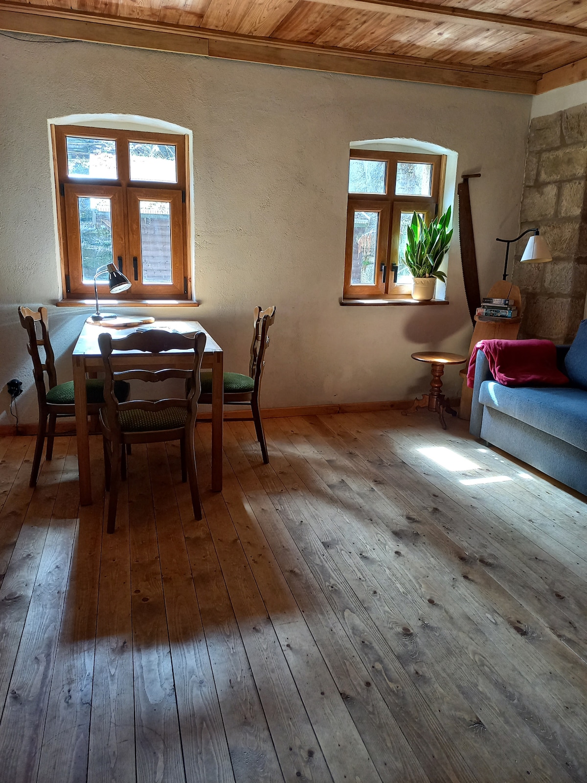 Unser Haus ist ein 270 Jahre altes Umgebindehaus das wir in liebevoller Arbeit renoviert und umgebaut haben. Soweit es möglich war haben wir die alten Holzdielen oder Holzfachwerk erhalten oder wieder hergestellt. Unseren Garten ist so gestalltet das sich Lebewesen die dort heimisch sind noch wohlfühlen dürfen wie, Salamander, Igel, Glühwürmchen, Eisvogel und wilde Bienen. Wer sich längere Zeit im Garten aufhält kann diese vielen selten gewordenen Bewohner in unserem Garten beobachten.