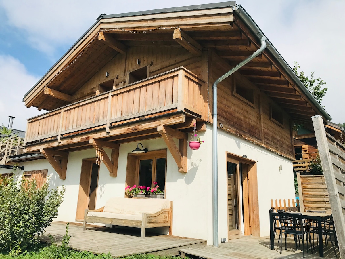C’est dans un cadre de verdure que la cabane s’est construite en 2024. Ce spacieux petit chalet de 35m2 vous offre calme et un paysage magnifique au pied des montages de la vallée de Chamonix. Idéal pour un couple ou avec des enfants, il bénéfice d'installations et d’aménagements élégants et modernes (vidéo projecteur, wifi, plancha, cuisine équipée, d’une belle terrasse au soleil couchant avec une vue magnifique sur nos montagnes et un jardin).