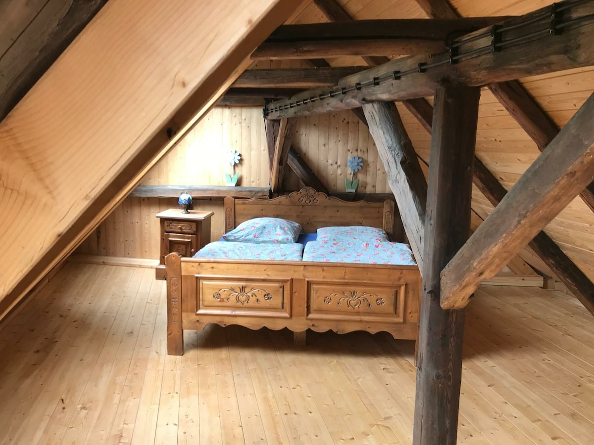 Mit viel Liebe zum Detail wurde unsere alte Scheune größtenteils mit den originalen, historischen Baustoffen restauriert. Wer schiefe Wände und Fussböden sowie Fachwerk liebt, wird sich hier pudelwohl fühlen. Eine 30 qm große Terrasse zum Garten heraus ergänzt diese familienfreundliche Unterkunft. Wie in solchen Gebäuden üblich, gibt es Treppen/Steigen aus der ursprünglichen Bauzeit. Der seperate Kinderbereich bietet viel Platz für Spiel und Spaß.