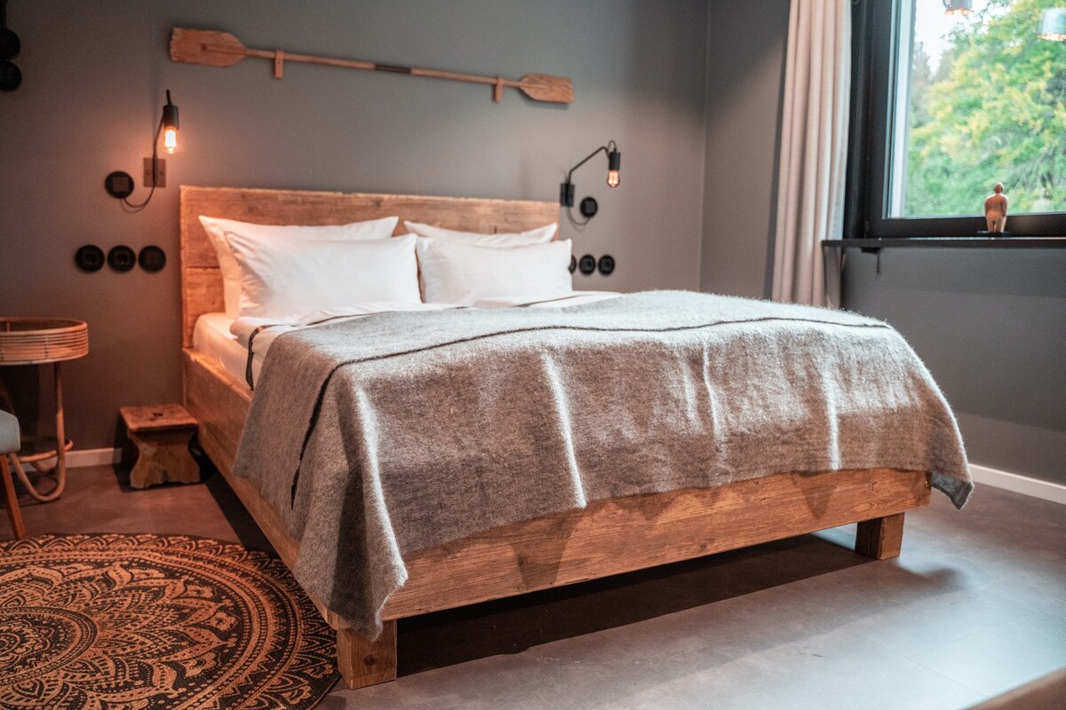 Ein absolutes Muss für alle Fans des hohen Nordens, wo Design gerne mit Ästhetik und Funktionalität verbunden wird. Mit detailgetreuen und echten Materialien ist diese Suite eine Hommage an NORDAL DENMARK, die mit ihrem Design und dem entsprechenden Lifestyle jedes Heim noch ein Stück individueller machen. Komm und fühl dich gleich wie zu Hause – oder besser noch: als etwas ganz Besonderes. Denn das ist die einzige Suite im HEARTS mit Infrarotsauna im Badezimmer! Hier kannst du nach einer langen Wanderung wieder auftanken und die Seele baumeln lassen. Abhängen auf der großen Wiese oder einfach mal Kopf freibekommen? Du kannst direkt vom Resort tolle Wanderungen starten. Im Sommer ist die Abkühlung im Silberteich ein Muss. Der Zugang zum Sauna-Bereich ist für Dich kostenlos. Das Fitnessstudio steht Dir von 7-22 Uhr zur Verfügung, so kannst Du dich in Arnie’s Muckibude fit halten. Wenn Du möchtest kannst Du das Premium Frühstück im Hotel vor Ort dazubuchen (19,50 EUR p.P.)