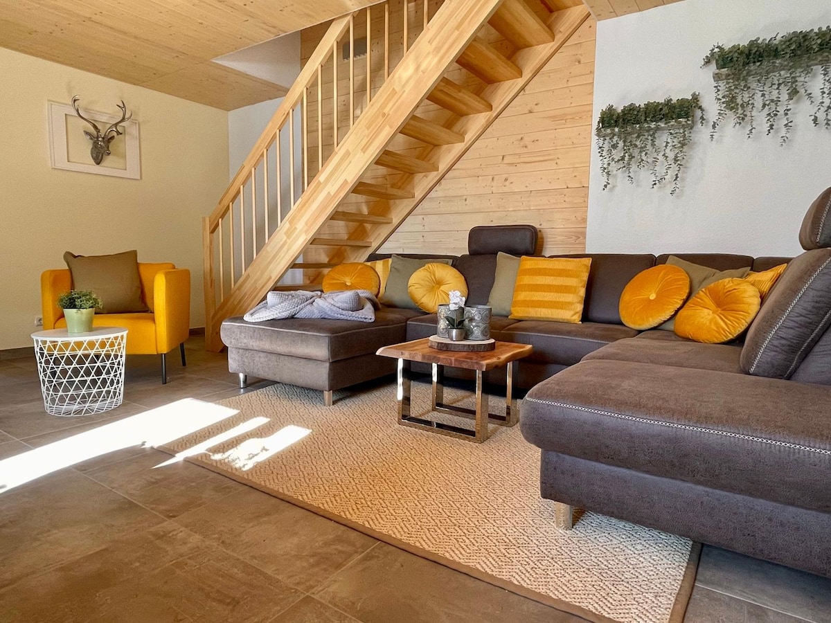 Das Urige Blockhaus liegt am Südhang des 504 m hohen Käsebergs mit einem Panorama Blick von der überdachten Terrasse in die Berge . Das Grundstück ist rund 1000 qm großen und komplett eingezäunt 2 Kamine innen und außen NEU NEU NEU Im Unterem Bereich des Blockhauses befindet sich ein Apartment der Zugang erfolgt über das Grundstück zum separat abgegrenzten Terrassen Bereich Das Apartment kann bei Interesse dazu gebucht werden das Apartment wird auch separat zur Vermietung angeboten