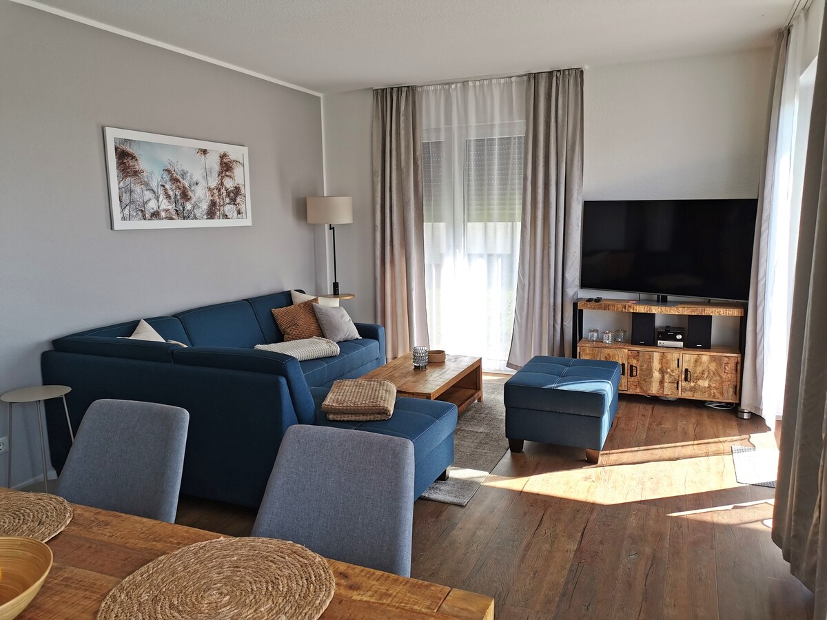 Große schöne Ferienwohnung. Im Wohnzimmer bequeme Couch mit großem Flachbildfernseher. Küche voll ausgestattet, einschließlich Kaffeeautomat (Melitta solo). Schönes geräumiges Bad mit großer Dusche. Ein Highlight ist die sehr große teils überdachte Dachterrasse mit Blick auf den Störmthaler See mit der Sauna, zweite Terrasse mit großer Freifläche vor dem Wohnzummer. Gut geeignet für ruhige Urlaube, Wandern und alle Arten von Wassersportarten. Ideal als Familienurlaub. Kleiner Privatstrand.
