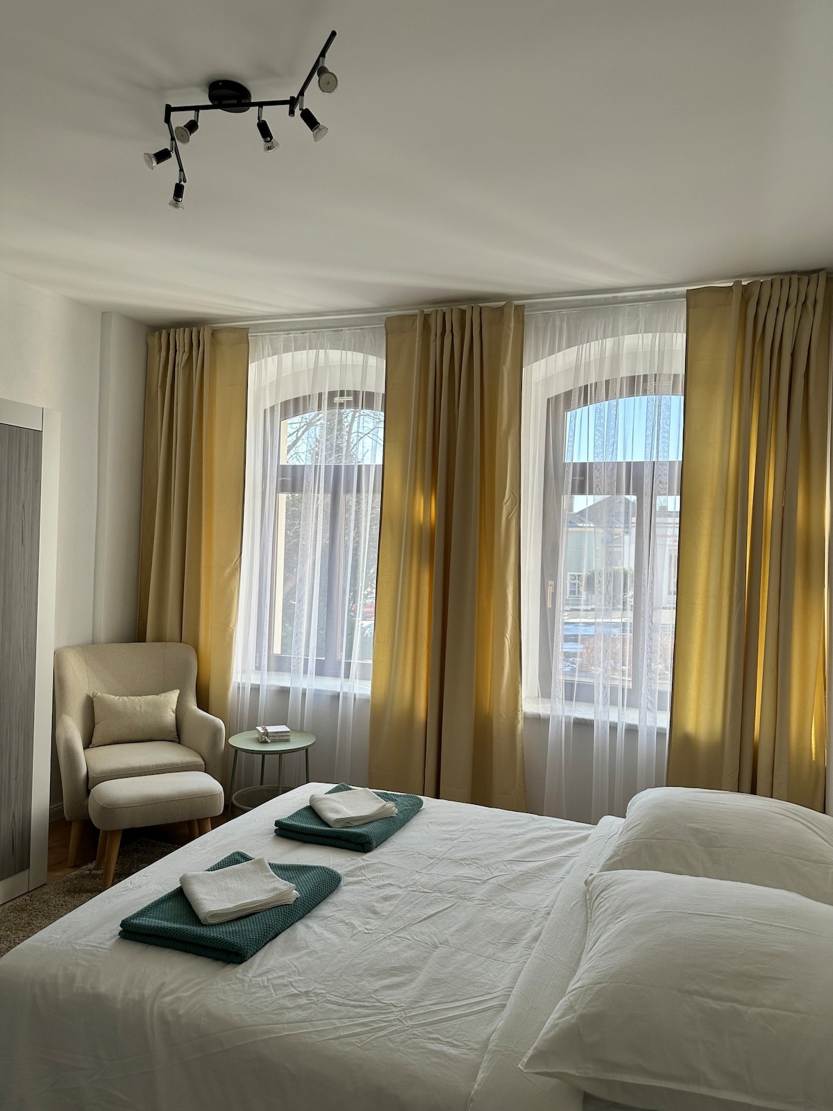 Fühl dich wie Zuhause in unserem gemütlichenApartment. In unmittelbarer Nähe befindet sich: Frühstück 50m / Bäcker 30m Getränkemarkt 30m Restaurants 100m Bahnhof 600m Straßenbahn 300m Fitnessstudio 500m Wellness/Sauna 500m Erholungsgebiet 1km Die 42m² Wohnung ist ausgestattet mit 2 Einzelbetten, Schlafsofa, TV, Föhn, komplette Küche. Du kannst kostenlos parken! Dinge des täglichen Bedarfs wie Supermärkte, Banken, Bars, Bahnhof befinden sich in unmittelbarer Nähe.
