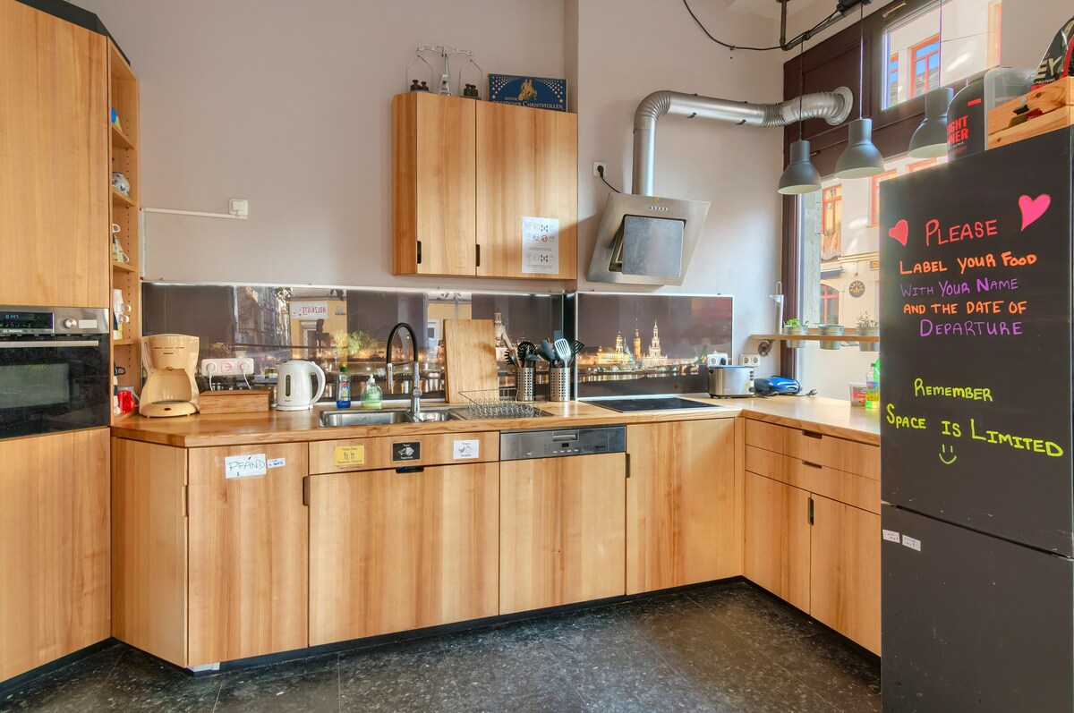 Our dormitory has four comfortable beds. There is fresh bed linen and lockers, and each bed is equipped with power sockets. The shared bathroom is right next to the room. Internet for free throughout the house.