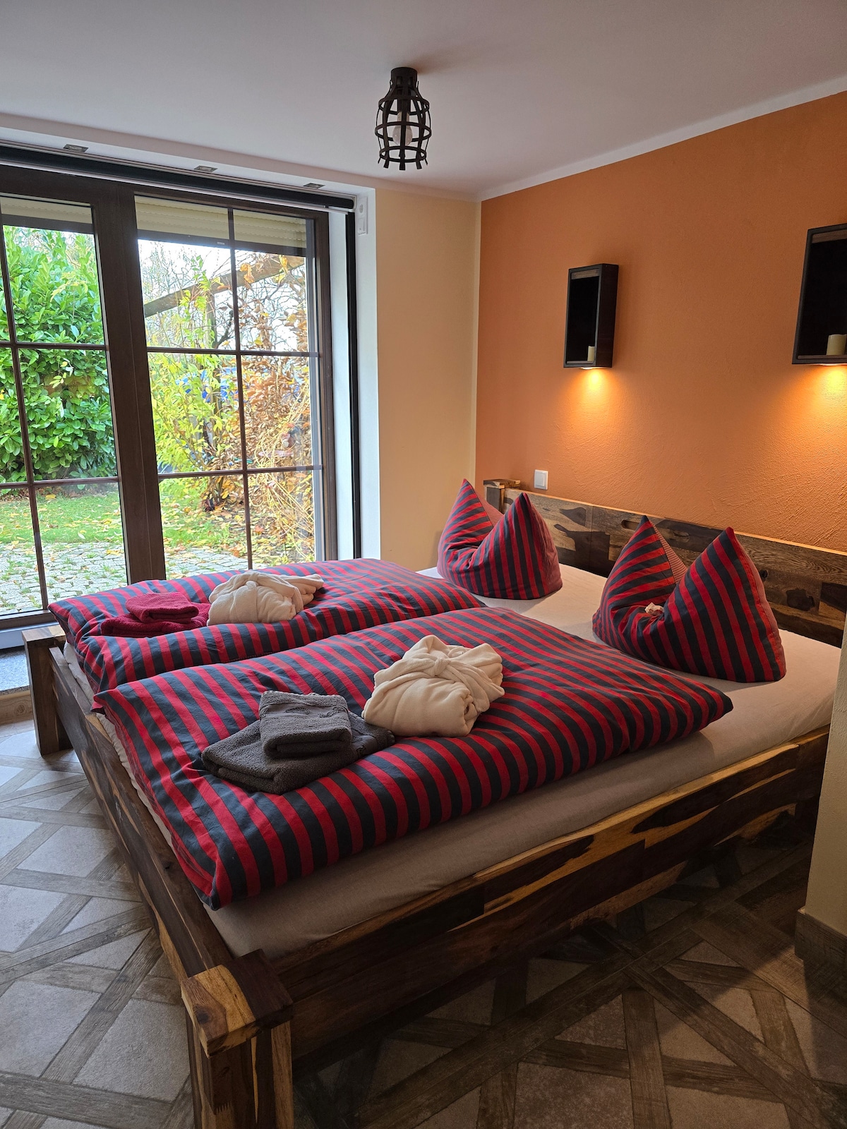 Gönnen Sie sich eine kleine Auszeit in unserem liebevoll gestalteten Appartement nahe Leipzig. Es erwartet Sie Ruhe, Komfort und ein Hauch von Romantik. Offen gestaltet mit voll ausgestatteter Küche, Sitzecke mit TV, bequemen Doppelbett mit Blick auf die große ebenerdige Dusche. Genießen Sie ein Bad in der tiefergelegten Erlebniswanne. Der angrenzenden Gartenbereich eignet sich perfekt für ein Frühstück oder Abendessen im Freien. E-Autos willkommen-Ladestation vorhanden, Parkplatz kostenfrei