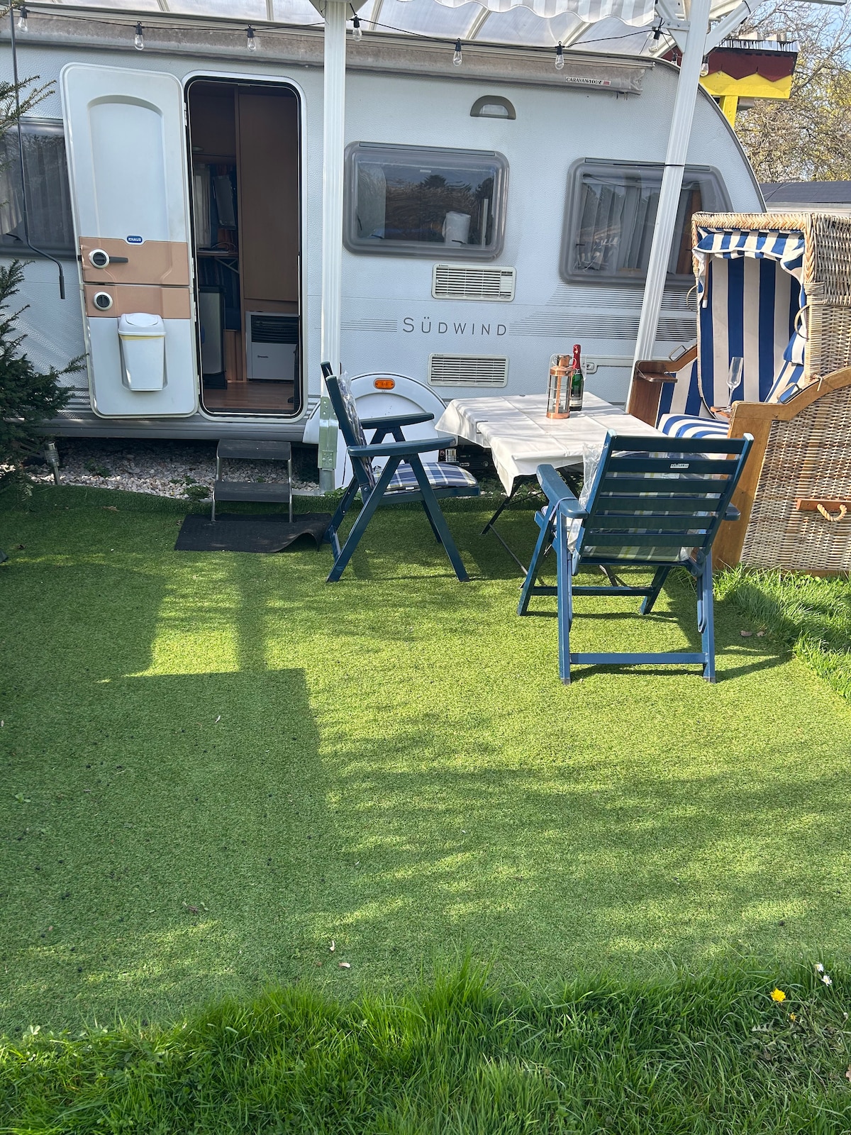 Hallo, wir bieten unseren Wohnwagen auf Campingplätzen im Leipziger Neuseenland an. Meist steht er am Hainer See bei Kahnsdorf. Wir haben aber kein Dauerplatz und müssen daher vorher Anfragen ob Ihr Zeitraum frei ist. Sie können sich auch gerne einen anderen Campingplatz hier im Leipziger Neuseenland aussuchen! Z.B. Strömthaler, Markleeberger oder Kulkwitzer See. Auch Wildcamping am Bornaer oder Naunhofer See möglich. Die Campingplatzgebühren müssen Sie zusätzlich zum Airbnb Preis bezahlen.