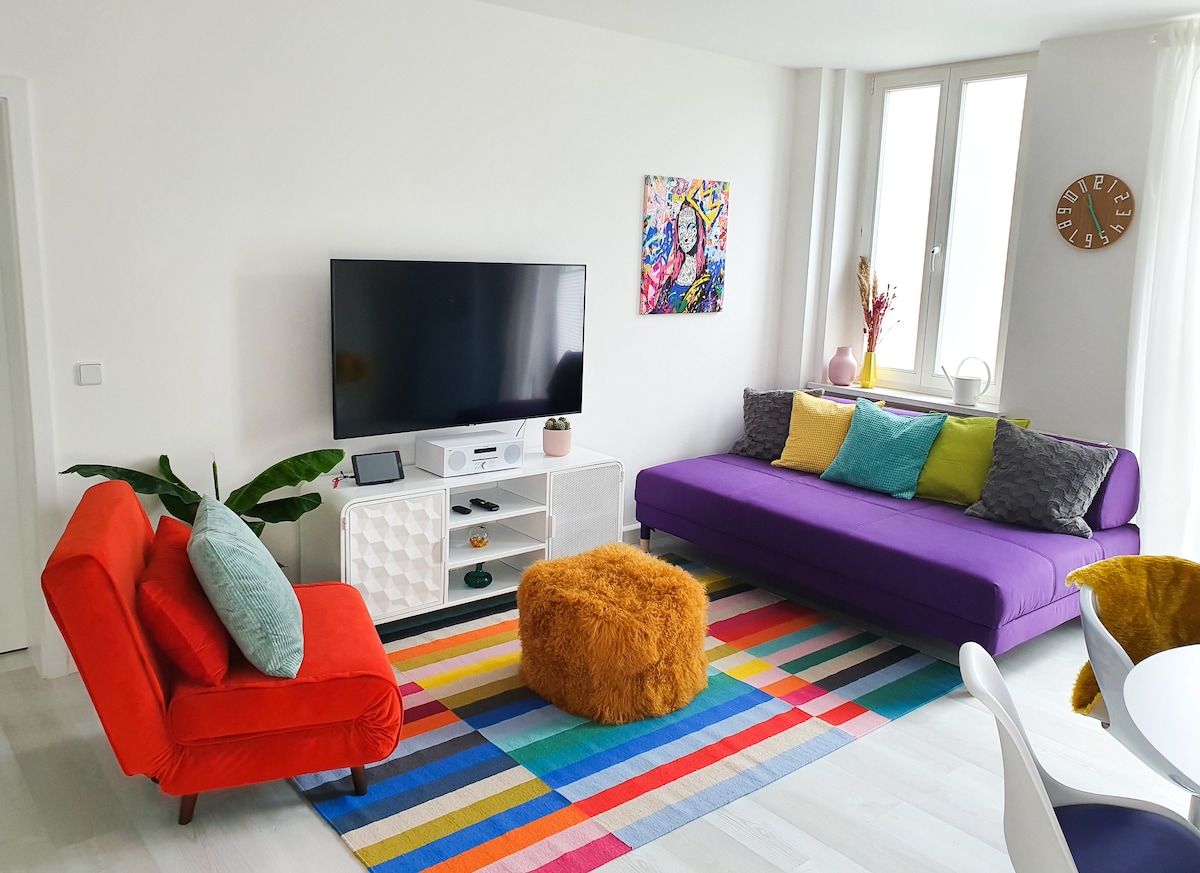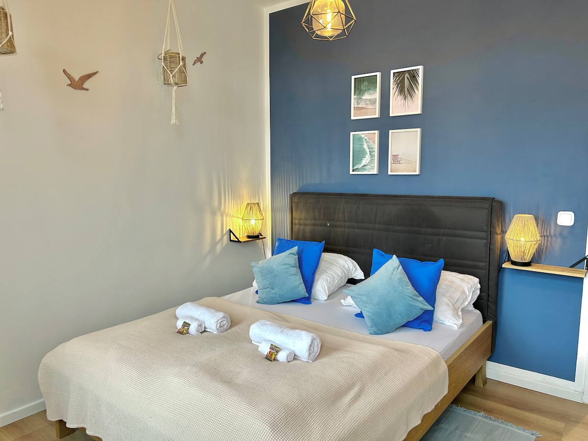 This stylish, newly renovated studio combines modern comfort with a calm and relaxing atmosphere. Subtle coastal accents, bright colors, and thoughtful details create a fresh seaside feel and a welcoming ambiance—perfect for unwinding after a day in the city. The clean, understated design evokes a sense of seaside escape, inviting you to relax and recharge.