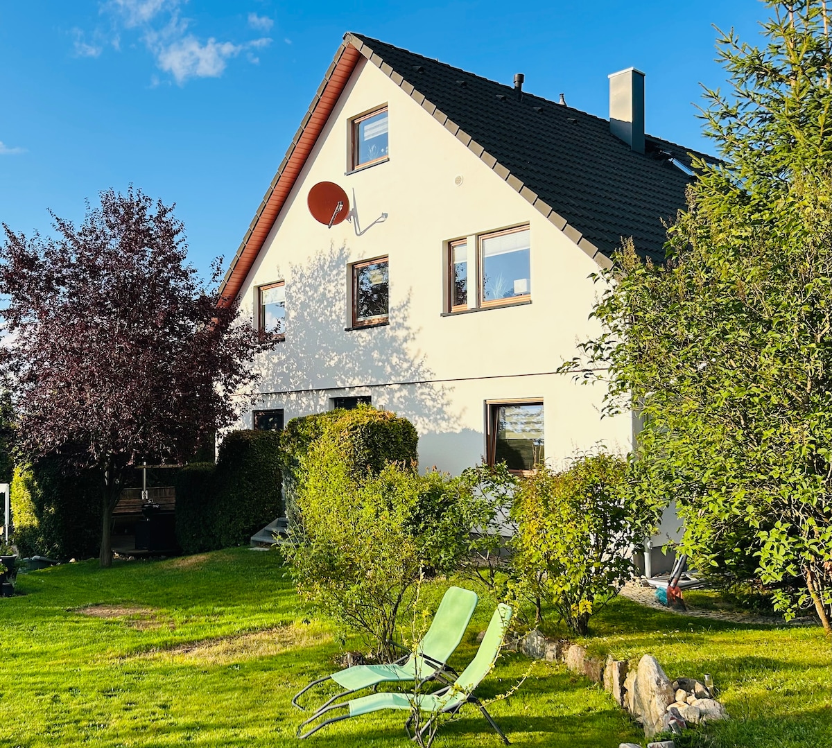Relax with the whole family in this peaceful and cozy accommodation. The townhouse is quietly located and at the same time close to the city center. Public buses and trams are within easy walking distance. My weekend and holiday house is fully equipped for a family. The equipment is neat and plentiful. The campus of the Technical University of Dresden and the Palucca University of Dance Dresden are within easy reach. Great playground in 350m.