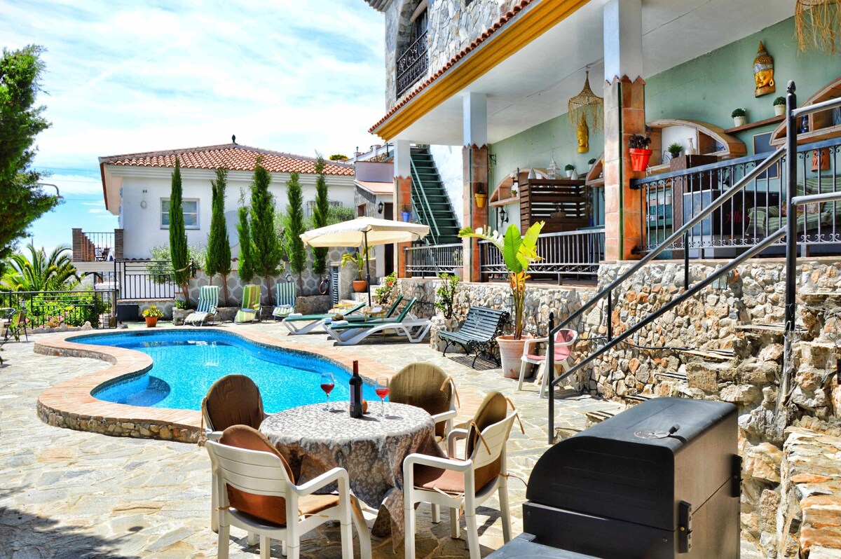 ThinkersINN, stable INTERNET, H/OFFICE, Double infinity POOL + Heated jacuzzi. A peaceful oasis invites you. In the evenings you can enjoy great Andalusian food, drinks, and music in the city center. We have 2 studios on the side of the Hacienda, the pool is private and belongs only to our house. The bedroom (bed 2m long), rainforest shower, AC, SmartTV, glassed terrace, kitchenette, Weber gas grill. Our house is very quiet and private right on the edge of the center on Tarmac road/free parking.