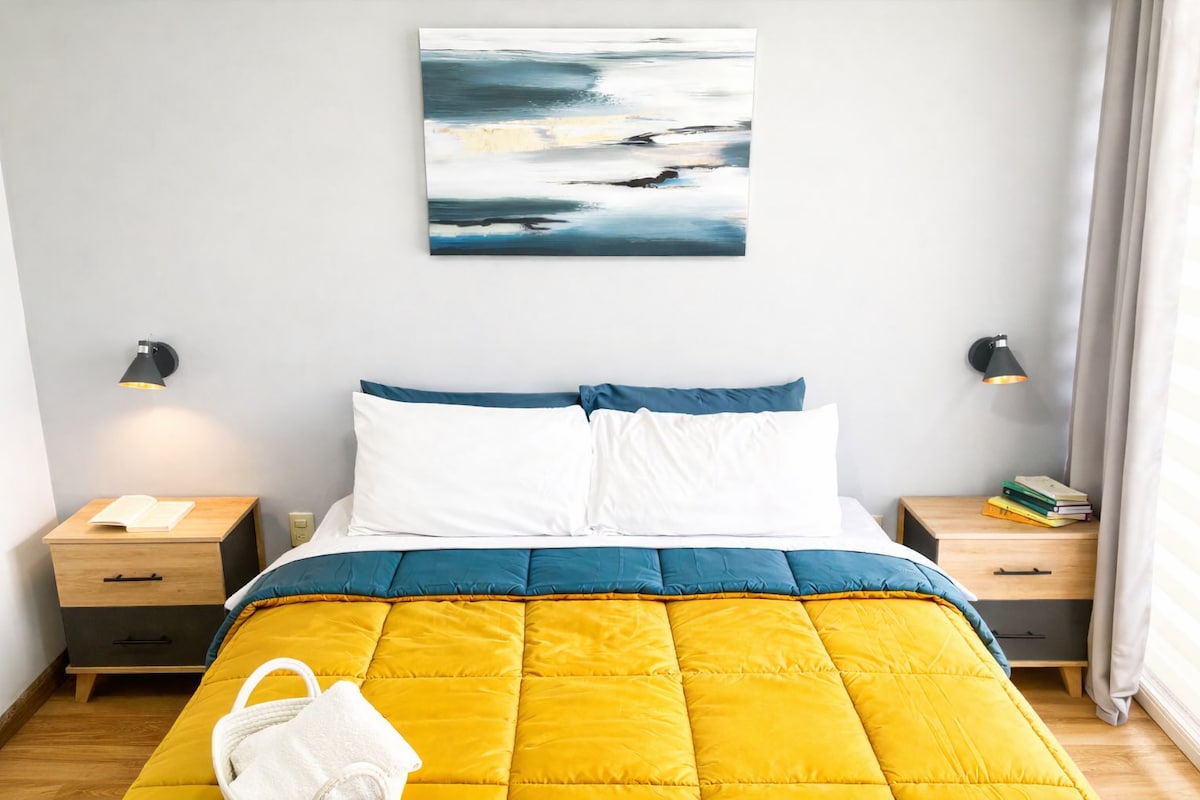 Relax in this brand new, cozy and comfortable apartment that hosts 4 guests. Start your day with a coffee on a delightful and relaxing private terrace . It has 2 spectacular master rooms with queen beds perfect to rest. The place is equipped with appliances for a unique stay; washing and dryer machines are available for you. It has an amazing location at a walking distance to the historical center. Perfect for visitors that love confort, designer style and good location.