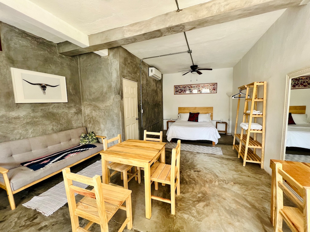 Casa Conchita Guest house is a hidden gem in the heart of bustling Sayulita Mexico- A downtown oasis. The Penthouse is a beautiful newly renovated 2 bedroom vacation loft perfect for groups or families. Featuring a new modern fully equipped kitchen with dining area, open and spacious double bathroom, and comfortable living/TV room. Enjoy free Netflix, WiFi, & AC in every room. Our property features an organic coffee bar on the first story by day, and an authentic Mexican restaurant by night.