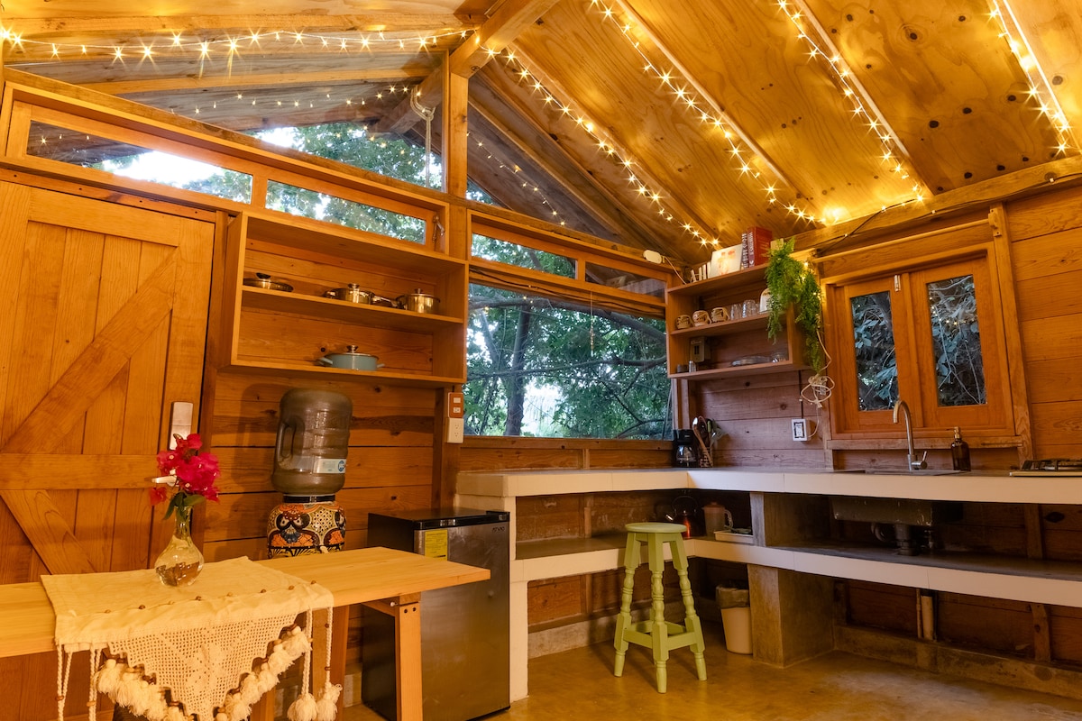 Discover the authentic charm of Casitas Estrella. The Cabana is a unique wood-built cabin tucked into a natural setting, just a 10-minute walk from vibrant San Pancho. Connect with nature, enjoy scenic views, and prime birdwatching from your outdoor space, perfect for yoga. Inside, enjoy the essential modern blend: ice-cold A/C, fast WiFi, and a full kitchen. It’s the ideal escape for couples, digital nomads, or solo travelers seeking peace with essential modern amenities included.