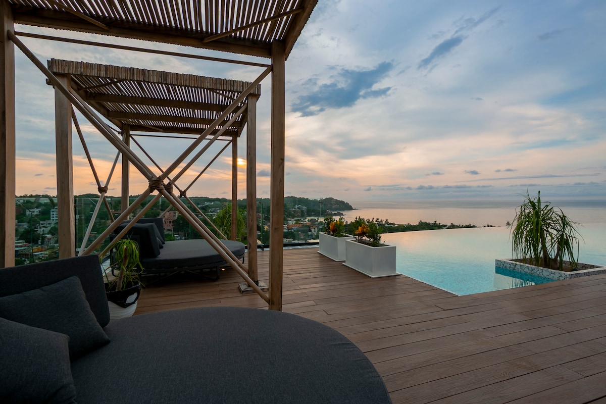 Enjoy a stylish experience at this centrally-located casa. The beachfront luxury condo is steps from Downtown Sayulita's restaurant and nightlife scene, yet sheltered from the noise - offering peaceful bliss within walking distance to anything you need. The 3 bedroom space offers 4 beds (2 Kings, 2 Doubles), a full kitchen, TV's, internet, 2 working stations w/ docking systems, luxury décor/finishes, a private balcony with breathtaking ocean views, etc. Common Space: Infinity pool, BBQ lounge