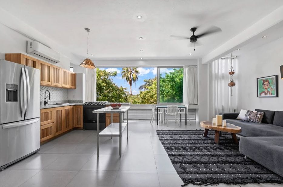 Great speed WiFi reliable for working remotely, Cozy apartment in Sayulita downtown just 2 blocks away from the beach. 2 bedroom and 2 sofa beds, capacity 6 pax total. Garden area and large room with high ceilings giving a balance of luxury and comfort, for relaxation and tranquility. You can enjoy coffe shop, bars and restaurants to delight your palate just a few steps away, it includes air conditioning, automatic controlled access, parking space, incredible lounge pool.