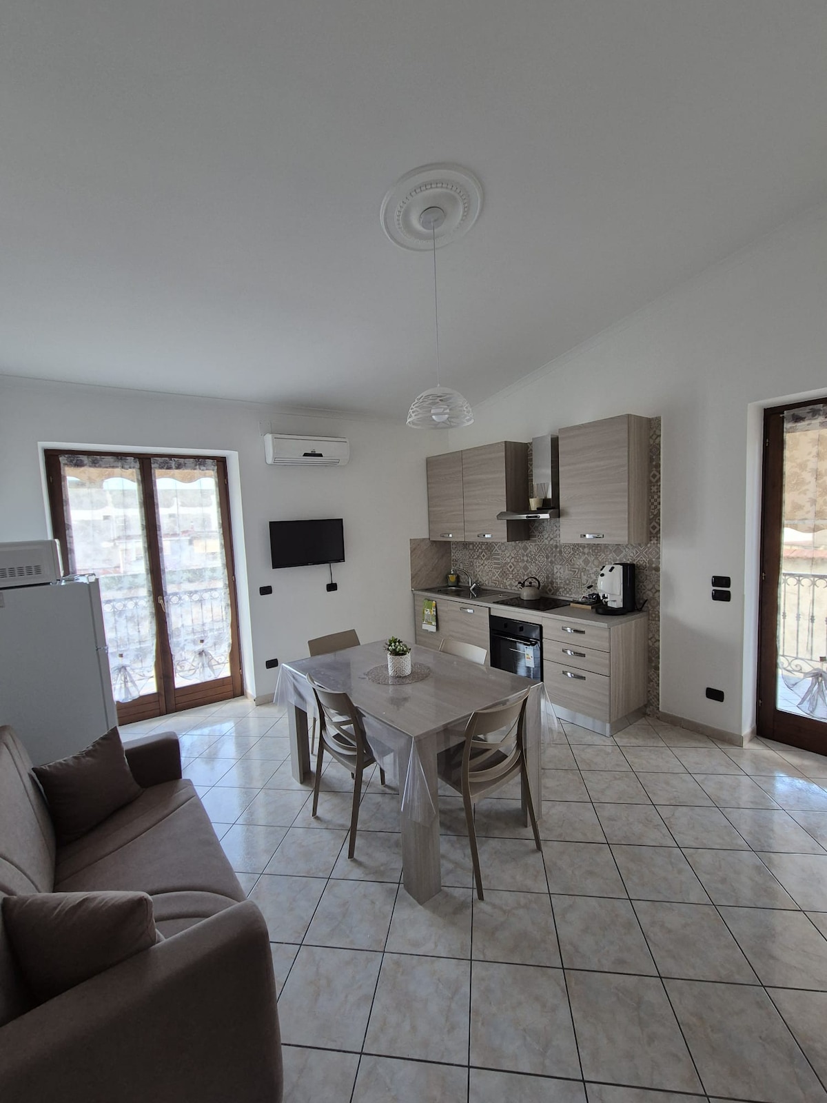 Accogliente appartamento con vista esclusiva sulla città ed un respiro intenso sul mare, a brevissima distanza dal centro storico. E' composto da un ampio salone con comodo divano letto, zona pranzo con balcone e terrazza con vista mare, arredato con stile classico semplice e delicato; camera matrimoniale con bagno privato con doccia ampia; cucina attrezzata e bagno con lavatrice. Ubicato al quarto piano senza ascensore raggiungibile attraverso comode scale.