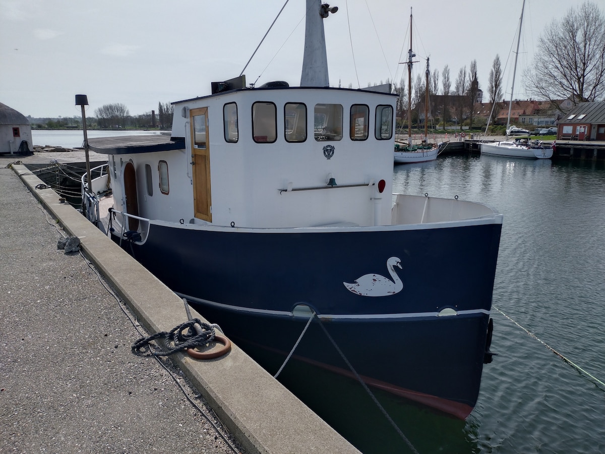 住在“Svanen”船上。