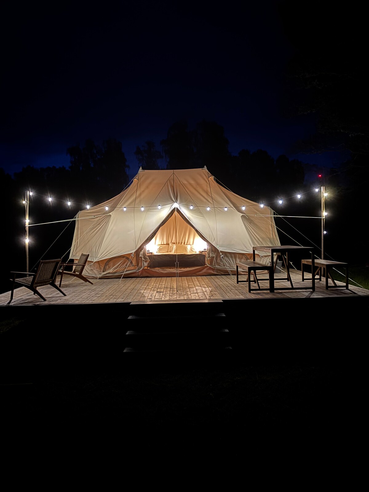 Välkommen till vår nya oas vid sjön Bellen! I hjärtat av Småland och Astrid Lindgrens hembygd. Omgivet av majestätiska ekar precis vid vattnet, ligger vårt Glampingtält med förstklassig komfort. Här njuter ni av lugnet, vattnet, skogen och djurlivet i naturen. Laga mat i det fullt utrustade uteköket. Frukostpåse samt middags alternativ erbjuds. Perfekt plats för avkoppling och rekreation. Här kan man, fiska, utöva vattenaktiviteter, bada bastu mm. Kom och skapa oförglömliga minnen hos oss.