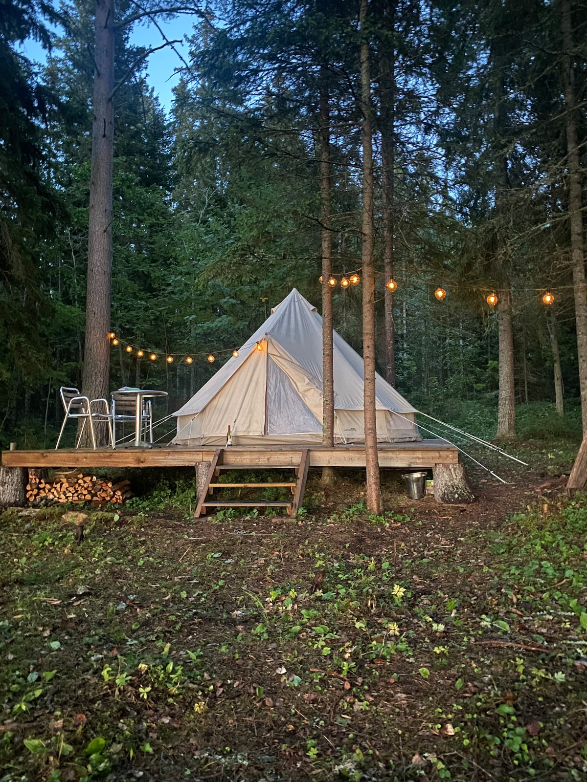Boka in en övernattning i vårt canvastält som ligger avsides och den enda grannen är skogen, blåbärsris och underbara Siljan! Visst låter det magiskt?! Tänk dig att vakna till fågelkvitter och stillsamma vågor som slår mot sjökanten. Du ligger i en bekväm dubbelsäng och tittar ut mot Siljan. Frukosten, lunchen och middagen lagar du själv över öppen eld. Vilken grej! Du kan njuta av stillheten, naturen, vattnet och doften av nykokt kaffe över öppen eld! Allt detta och lite till finns hos oss!