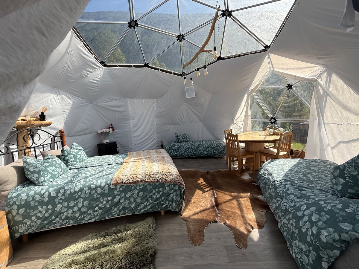 Välkommen till platsen Hvergelmir. En unik skogsoas i sagornas landskap - Hälsingland. Försvinn helt i naturens lugn och koppla bort vardagens outhärdliga stress. Vid en porlande bäck på en tallbeklädd ås bor du i ett rymligt lyxtält omsvept av vacker natur. På denna unika plats har du möjlighet att bada i den vedeldade badtunnan, basta i jordbastu och laga mat över öppen eld. Allt för att göra er vistelse så autentisk, avslappnande och rofylld som möjligt!