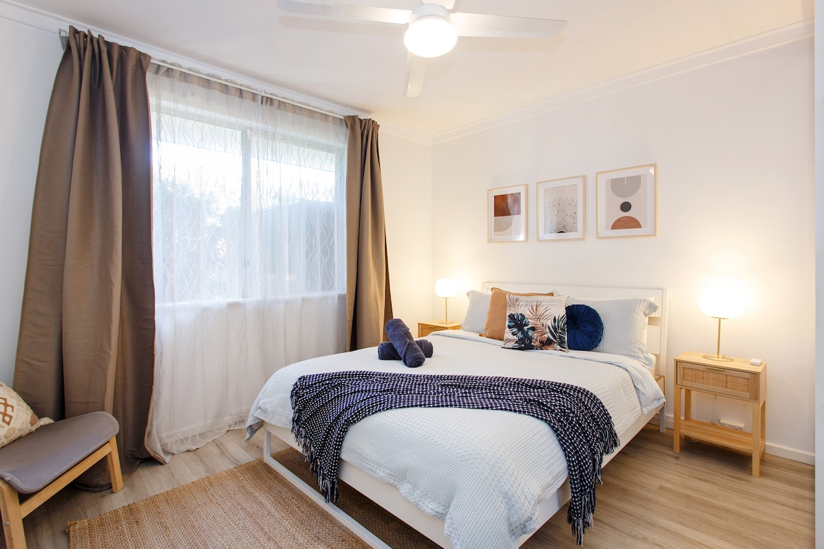 Short 10-minute walk or 3 minute drive to the beach, cafes & shops, we offer a peaceful, secure and private guest suite in the front of our house. You get your own entry along with bathroom, lounge, dining room & kitchenette. There is a second toilet off the laundry. Outside you have access to a patio area that includes BBQ and back garden. Self check-in. Check yourself in with keyless entry.