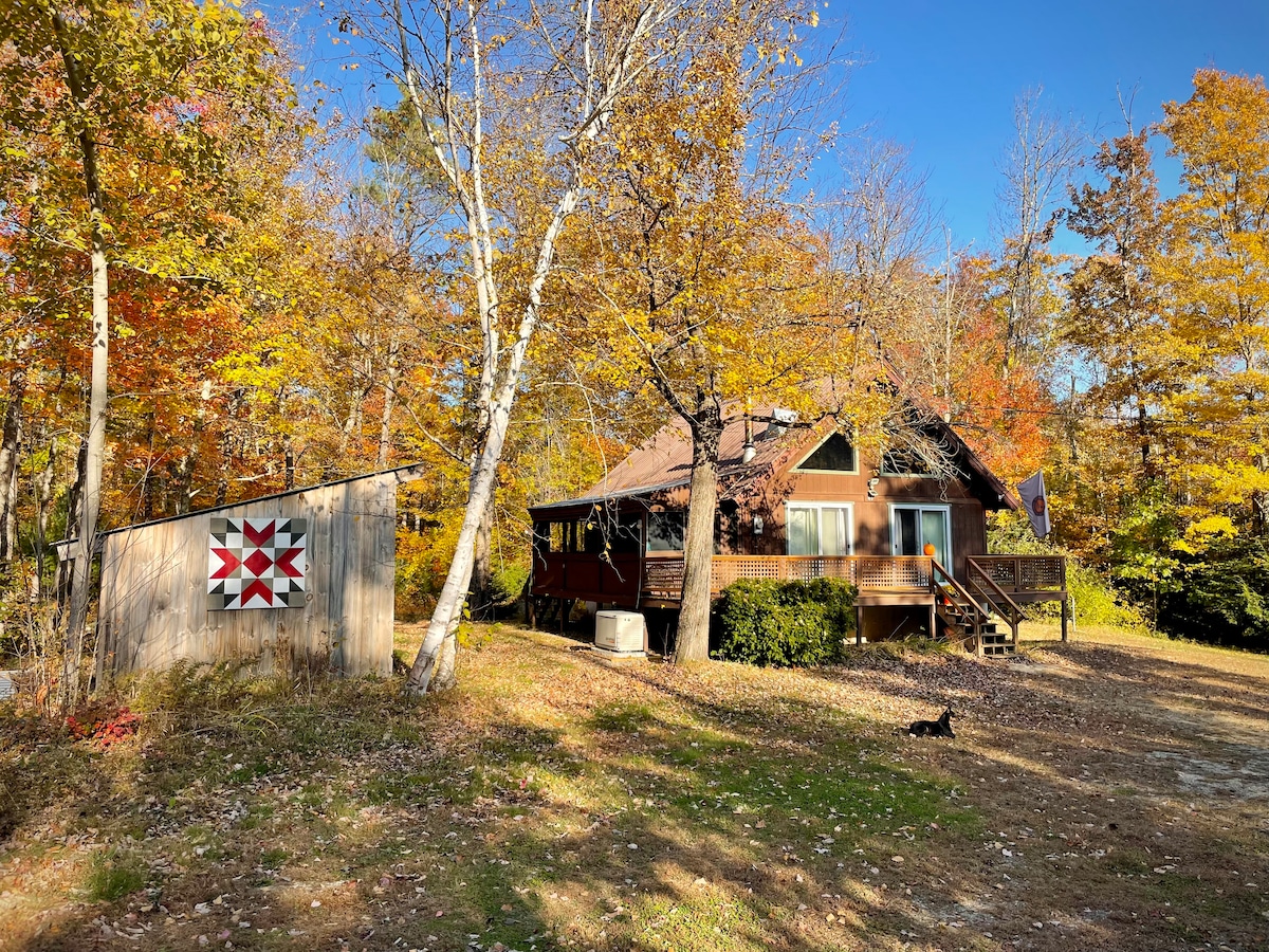 Don’t forget your dogs! Enjoy the peacefulness of this cozy tranquil cabin tucked away in the woods. The cabin has the best of both worlds; private & secluded, while being close to town. Kick your feet up on the deck. Breathe in the pine, listen to the birds & frogs. Or take a lovely stroll down Bufflehead Cove Lane, walk quietly you may see a heron or egret on the pond. Left at Port Rd. & continue down to Western Ave. Lots of stairs. Driveway very steep, requires 4-wheel drive in winter.