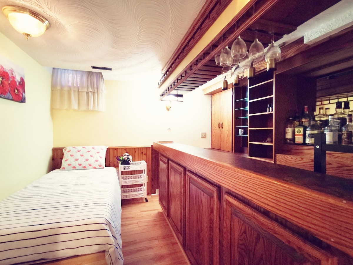 Wind down in a sparkling clean room close to Centennial College! The queen sized bed comes with an Endy mattress. Facilities include a 40" TV and a mini fridge, a microwave and a kettle, a small work desk and a charging area for all your devices. There is plenty of storage room for your personal items, including a hanging closet. You'll get access to a newly renovated shared bathroom. There is laundry on site, which may be used upon request. Please note that we have 2 cats on the premises.
