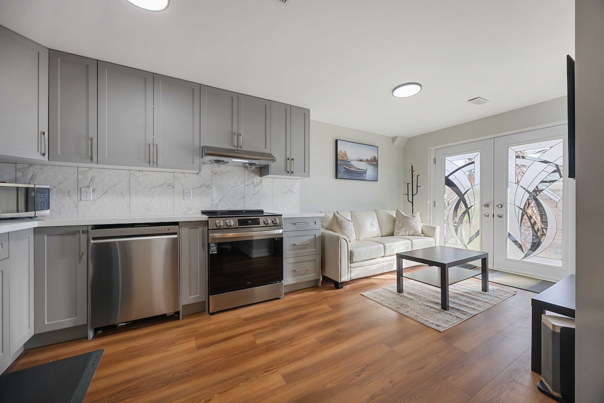 Welcome to our brand new, luxury modrn unit located in a quiet, family-friendly neighborhood only min from HWY401,407,DVP, TTC & countless amenities! Newly & lovingly modern space with luxury finishes throughout. Enjoy comfortable living quarters, brand new kitchen appliances, bright rooms, large windows, a dedicated workspace, in-unit washer/dryer, free WIFI, Netflix, Prime & free parking. This upscale oasis is truly the perfect space for business travelers, young professionals & couples alike!