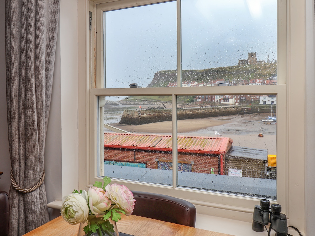 A 300 year old fully modernised luxury fishermans' cottage retaining many original quirky and unique features. Located on the harbour side with a small beach and just minutes from all the old town local restaurants, bars and shops and the famous 199 steps to the abbey. Guests can enjoy fabulous views directly on to the harbour/ beach and out to sea. It's near impossible to find a front line location/luxury holiday cottage with stunning views in front of the harbour and beach, this is the one.