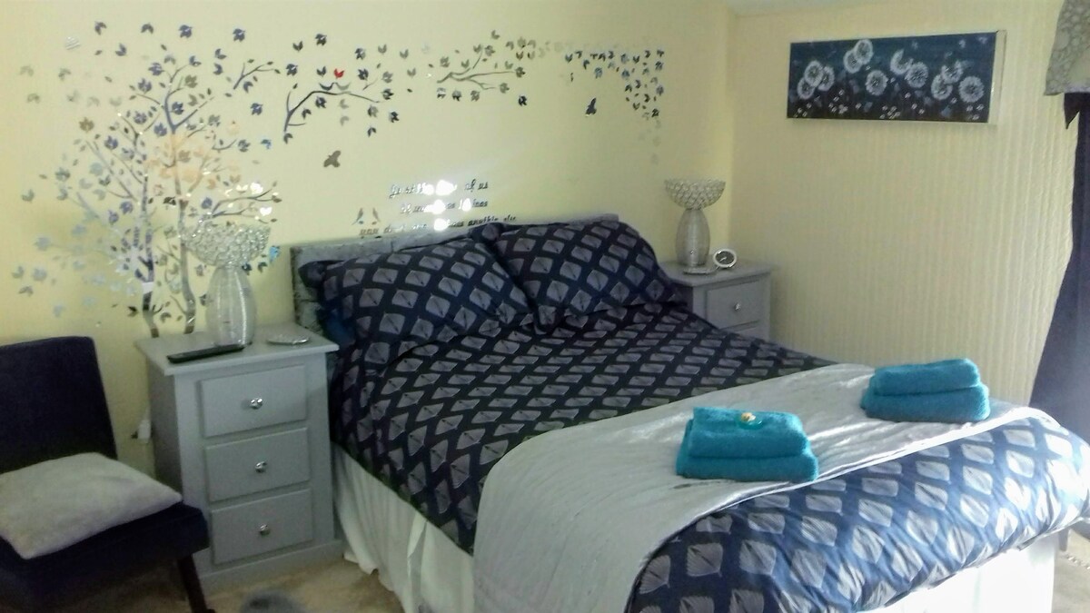 Great Location- If you are interested in a long stay .please get in touch. FREE parking. The whole house is for your use only. The lounge has ample seating , new very comfortable sofa, SMART tv and a dining area. Modern kitchen, dishwasher, oven, hob washing machine, freezer. Nice bathroom, double bedroom with comfy bed (EMMA mattress). Small outside covered seating area , washing machine and freezer. Also a small yard