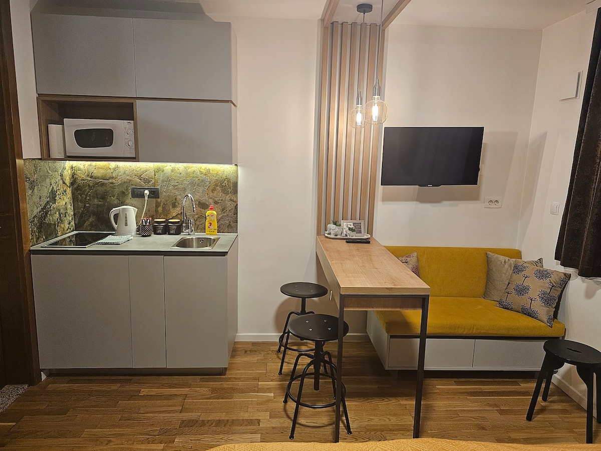 Beautiful small but very cozy apartment in a new building located in heart of Sarajevo with an amazing view of the city. The apartment is fully renovated with state-of-the-art compliances and furniture. Perfect for single businessman or couple. Sarajevo View in Sarajevo offers accommodation with free WiFi and Air Condition. The apartment is fitted with a TV and bedroom. The kitchen has a microwave, fridge, kettle. Eternal Flame in Sarajevo is a 14-minute walk from the apartment