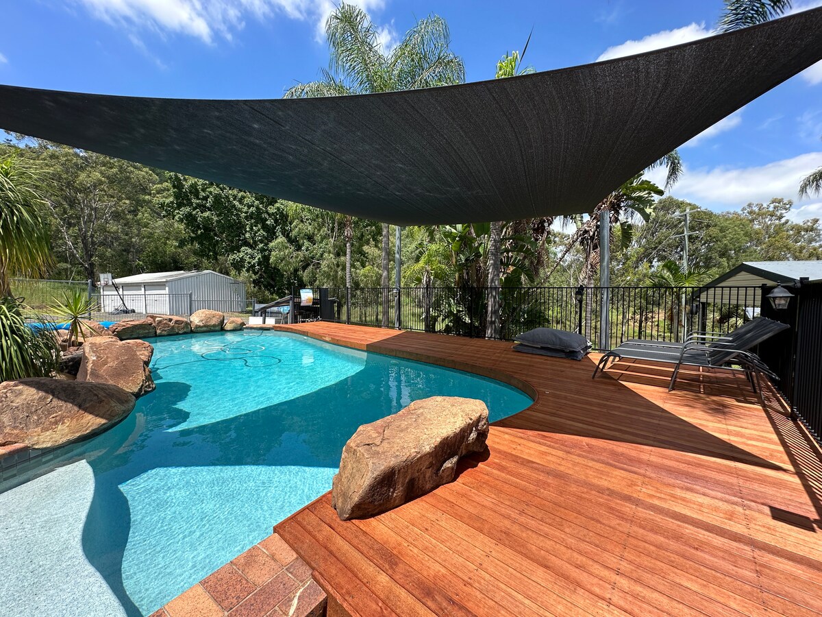 Ocean Views to the Gold Coast and only meters walk to the pristine golf course. Relax and unwind on the expansive deck overlooking Tamborine Mountain to the magical view of the Pacific Ocean taking in the high rises of the Gold Coast. The ever changing views from stunning sunrises to sparkling night lights of the Gold Coast will take your breath away. If you can drag yourself away from the deck you can enjoy a cosy indoor fireplace or the fire pit set amongst the tropical rainforest garden.