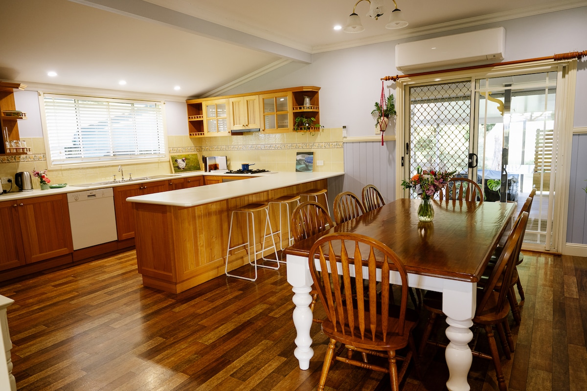 Full of country charm and comfort, the Scenic Rim Farm House is the perfect base for your Scenic Rim adventure or simply to stop for a while and soak up the serenity. Set within the grounds of the Scenic Rim Farm Shop, you can can pop across the lawn to grab coffee, brekky or lunch and wander through the Elderflower Farm flower field. TIP: Catch the early morning from the cane lounge on the verandah. Silence, save for bird song, an irrigator watering the crops, or perhaps a tractor passing by.