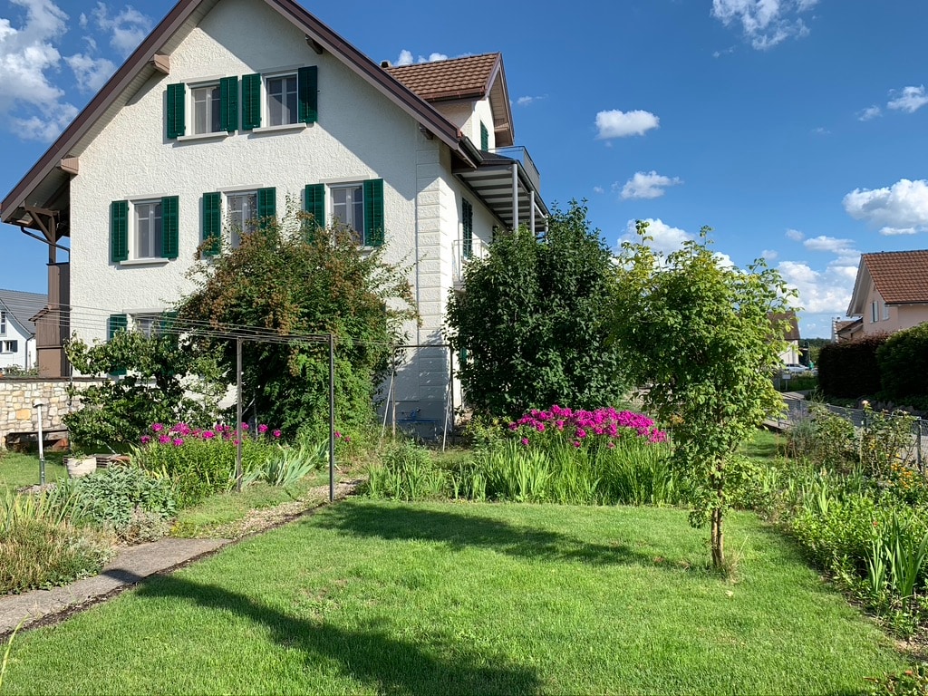 Bright, modern and quiet apartment with terrace and free parking – ideal for short and longer stays near the Rhine Falls. • 55" 4K TV with Netflix & Prime • 24" monitor + HDMI – ideal for home office • Fully equipped kitchen with stove, microwave, fridge and coffee machine • Free parking, coffee, washing machine and dryer • Bus stop just 2 minutes’ walk away • Stays from 1 month are discounted – just contact us directly via Chat • City registration possible