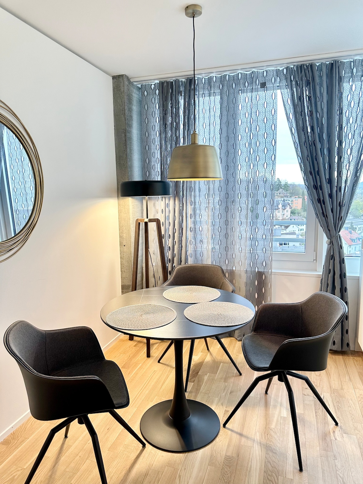 A UNIQUE OPPORTUNITY – make the best and most of your short stay in Switzerland. You have the chance to reside next to world famous Rhine falls. The place has best of nature and urban convenience at a hop, skip and jump away. The apartment is fitted with moveable modules that enhances the space concept. Add to that top notch furnishings and services. This unique place has a style of its own.