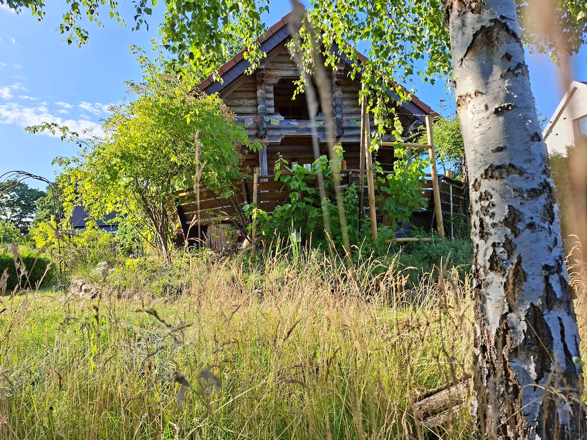 带壁炉和桑拿的小屋,位于大自然中