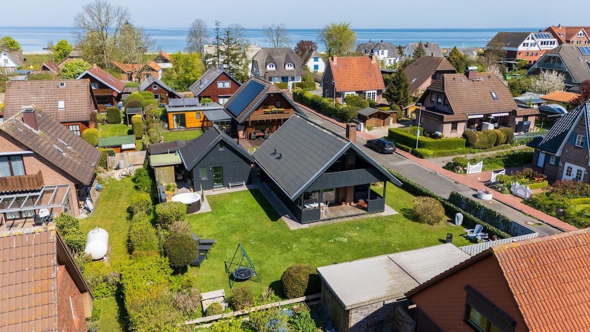 Enstpanne in einem modern eingerichteten Holzhaus direkt an der Ostsee. Nach dem Strandgang, springst du im windgeschützten Garten unter die Gartendusche und entspannst danach im warmen Badezuber, lauscht den Möwen, gehst vielleicht noch einmal in die Sauna, bevor du dich zum Entspannen auf die Lounge der Veranda, oder auf die geschützte Loggia zurückziehst. Den Tag lässt du mit einem Getränk am Kamin ausklingen und genießt den großen Essbereich mit deinen Liebsten. Willkommen in der Ole Käthe.