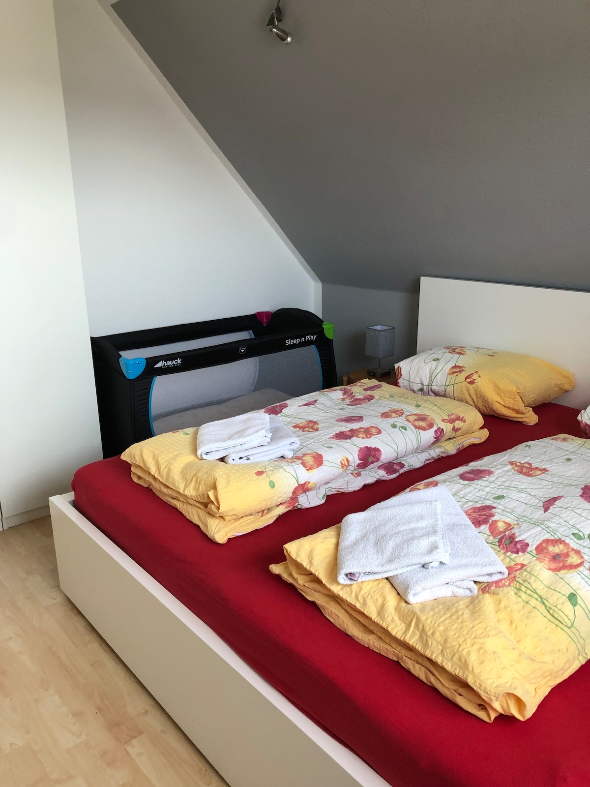 Die FeWo Kunterbunt ist nun unsere größte FeWo, in der 6 Personen bequem Platz haben (3 Schlafzmmer!). Sie befindet sich im ersten OG und hat eine ca. 35 qm2 grosse Dachterasse mit Blick auf die Scharbeutzer Heide. Sie ist aufgeteilt in zwei große Schlafzimmer mit Boxspringbetten (180x200), einem Kinderzimmer mit Hochbett (Verbindungstür zum Elternschlafzimmer) einem Wohn- Essbereich, einer Küche mit Geschirrspüler und Bad. Die Wohnung ist komplett neu renoviert und ausgestattet in 05/23