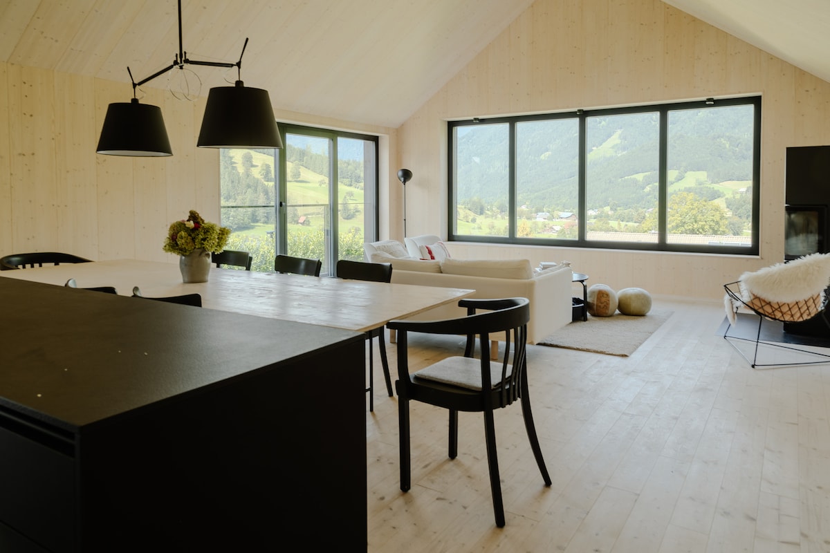 Hier im Designer-Chalet finden sie Ihre ungestörte Alleinlage – umgeben von ökologisch wertvollen Bio Blumenwiesen, prächtigen Wäldern und mit freier Sicht bis hin zum Ötscher. Das im inneren und äusseren großzügige Haus verbindet gelungen alpine Tradition mit internationalem Design. Von der alten wohligen Stube bis zum lichtdurchfluteten Atelier mit Lichtkuppeln. Hier finden sie viel Raum für Ihre Familie, Freundeskreise oder Seminargruppen: Ihr Ort der Ruhe, Inspiration und Gemeinschaft.
