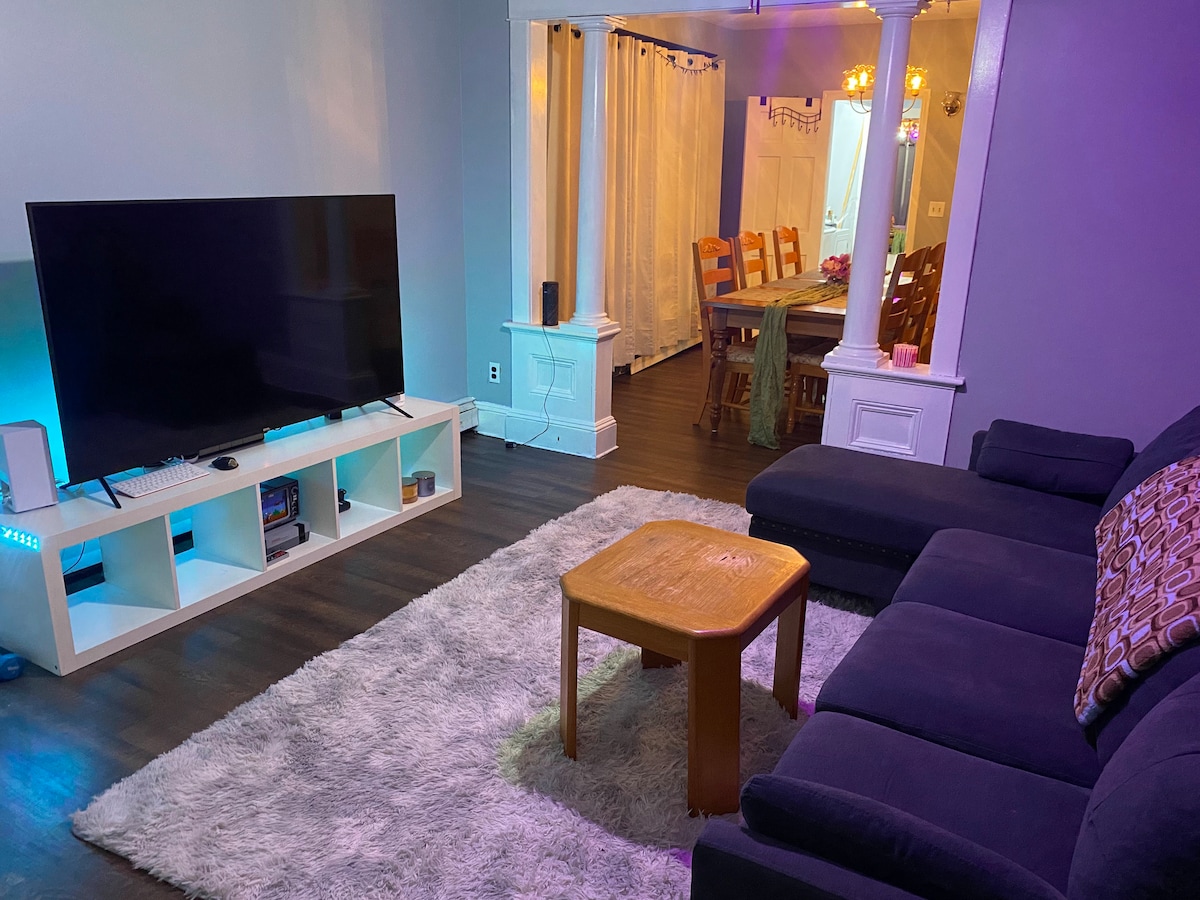 Escape to this family-friendly Clifton Park retreat—just 20 mins to Saratoga Springs and 25 to Albany. Perfect for fall getaways with a fire pit, outdoor movie screen, private playground, basketball court, and garden. Features a king bedroom, home office, full kitchen, fast Wi-Fi, soaking tub, and 20' x 55' parking for RVs or boats. Relax in the crisp autumn air, enjoy backyard movie nights, and stay productive or cozy in a quiet, peaceful neighborhood.