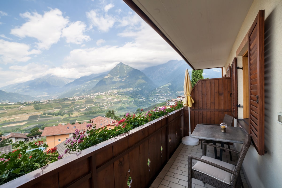 The comfortable vacation apartment "Laugen Rainegg" is located in Schenna, a village near Merano in the picturesque province of South Tyrol. The highlight of the apartment is the breathtaking view of the mountain peaks from your balcony. The modernly furnished apartment has a living room, a well-equipped kitchen with dishwasher and cozy dining area, a bedroom, a bathroom and can accommodate 4 people. Additional amenities include Wi-Fi and satellite TV.