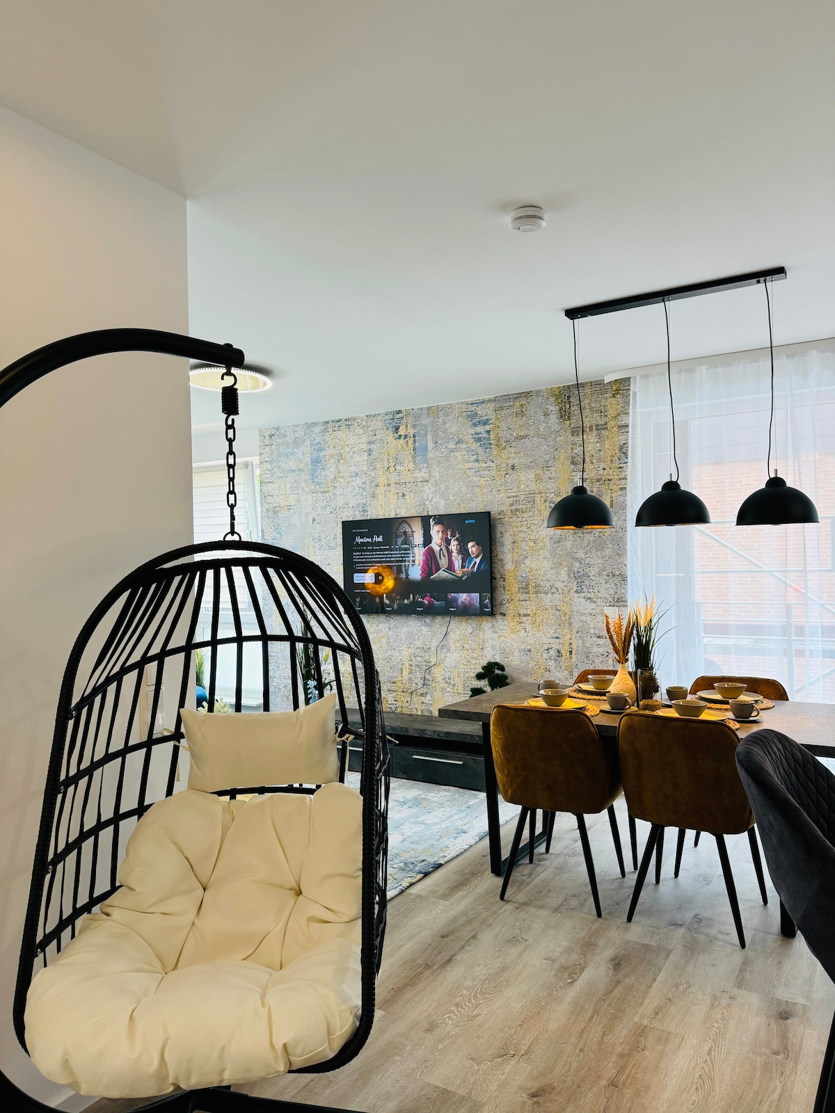 Die Apartments sind ausgestattet mit einem bequemen Doppelbett, einen UltraHD Fernseher mit Netflix, Prime Video und TV, eine komplett ausgestattete Küche mit Mikrowelle, Herd, Nespresso Kaffeemaschine, Geschirrspüler und Kühlschrank sowie 1 Bad mit Dusche und Waschmaschine. Wir verfügen über eine schnelle 1000 Mbit/s Anbindung ans Internet. Damit auch viel davon ankommt verfügt jedes Apartment über seinen eigenen WLAN-Zugangspunkt.
