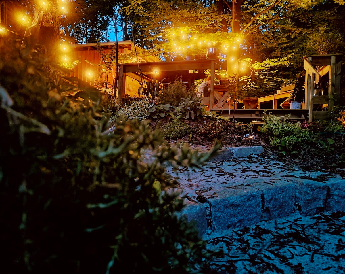 带私人热水浴缸蒸汽桑拿柴炉的Hideaway