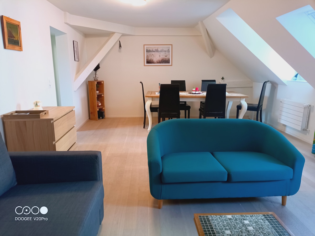 Our bright 3-room attic apartment is located in a rural area, but offers several shopping opportunities within a 2-5 min walk. The Swiss border is only a 5 min drive from the apartment. The apartment offers 2 bedrooms and a large living, dining and kitchen area. The apartment has its own balcony as well as a beautiful view from the skylight. Included are free parking, a washing machine and fast internet. Furthermore we offer our guests free access to Netflix, Amazon Prime Video and Disney+!