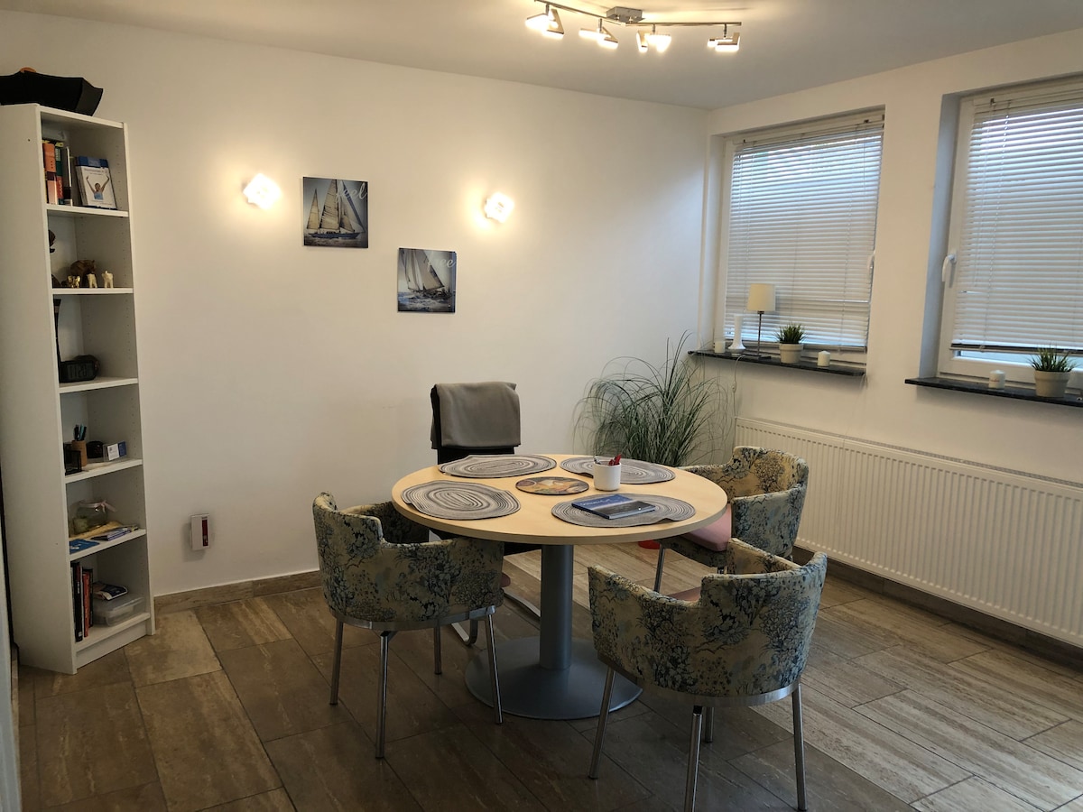 Gemütliche DG-FeWo in idyllischer Lage, kombiniertes Wohn-Schlafzimmer mit Ausziehcouch für Kind(er), voll ausgestattete Küche, eigene Sitzgelegenheit im weitläufigen Garten. Im geräumigen Badezimmer mit Dusche und WC, befinden sich noch eine Waschmaschine sowie ein Trockner. Die Couch im Wohn-Schlafzimmer bietet eine Schlafgelegenheit für zwei Kinder (bis 8 Jahre kostenfrei). Für Fahrräder steht eine Fahrradgarage zur Verfügung.