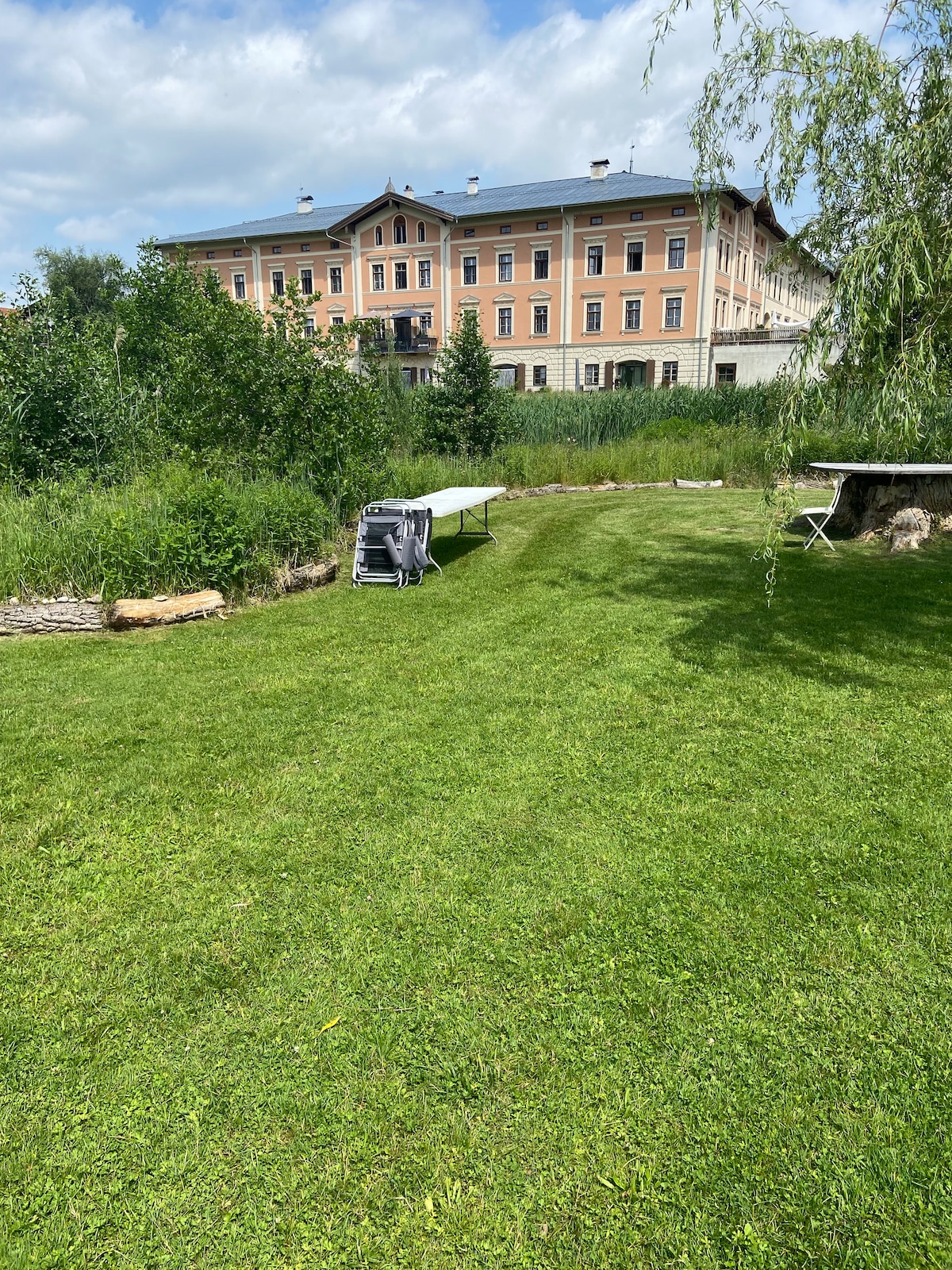 Das Atelier liegt im 2.Stock eines modernisierten Bauernhauses in spektakulärer Lage. Das Anwesen befindet sich am Abhang der höchsten Erhebung vor den Alpen im nördlichen Chiemgau. Vom Hof aus bietet sich ein Blick nach Osten weit über das land und nach Süden auf die Bergkette.Der Chiemsee liegt ca. 25 km entfernt, in der Gemeinde ist ein Badesee in wunderschöner Lage. Wir betreiben eine Biolandwirtschaft mit Hühnern, Bienen und Freilandschweinen und kleiner Schafzucht.